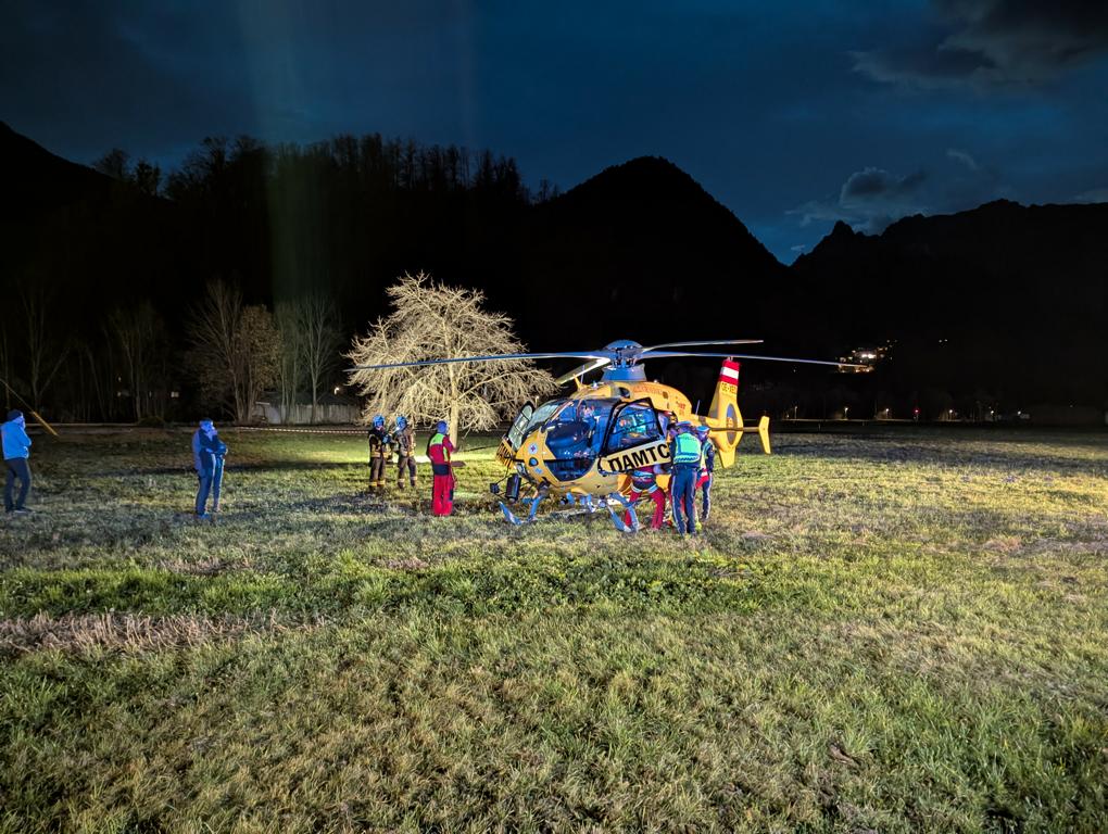 Die Aufgabe der Feuerwehr war das ausleuchten des Huschschrauber Landeplatzes nach einem Radunfall.