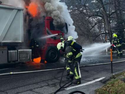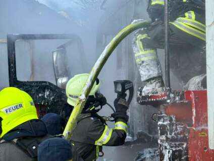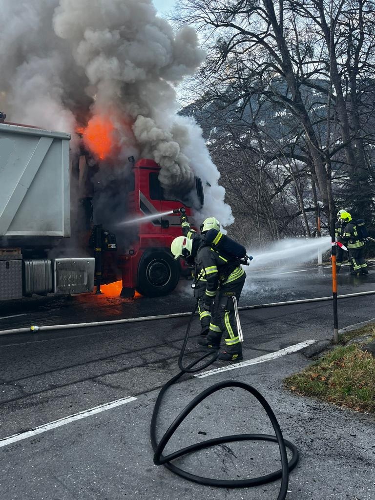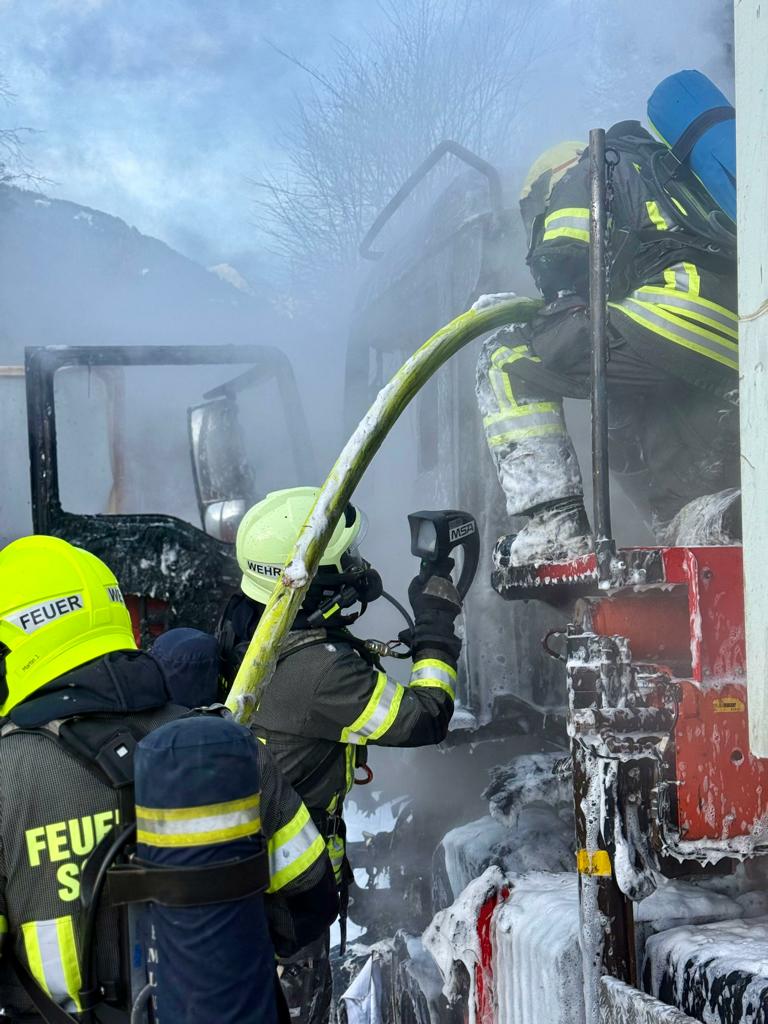 Beim Eintreffen der Feuerwehr wurde festgestellt, dass das Fahrerhaus des LKW’s in Vollbrand stand. Das Fahrerhaus konnte rasch mittels Schaum abgelöscht werden.