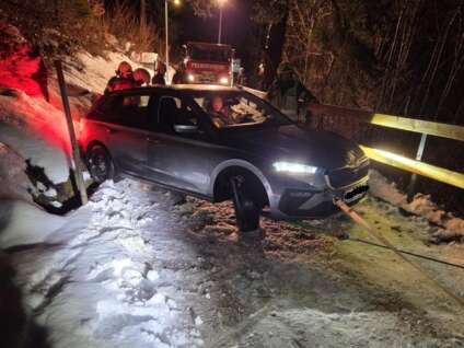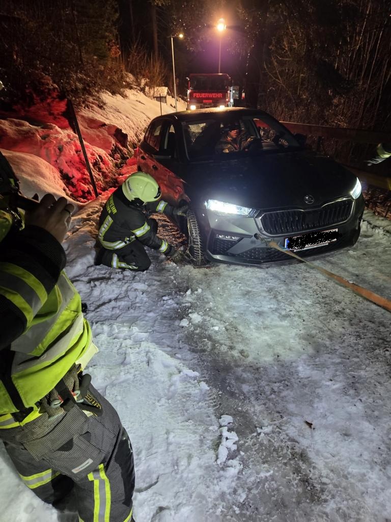 Beim Eintreffen der Feuerwehr wurde festgestellt, dass der PKW über die Fahrbahn abgekommen ist. Das Fahrzeug wurde wieder auf die Fahrbahn gezogen.