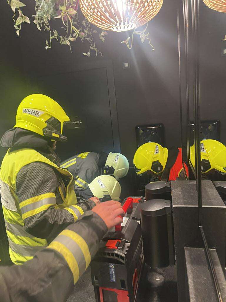 Beim Eintreffen der Feuerwehr wurde festgestellt, dass die Tür in das WC verschlossen ist. Die Türe wurde geöffnet und die Person der Rettung übergeben.