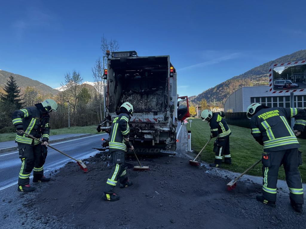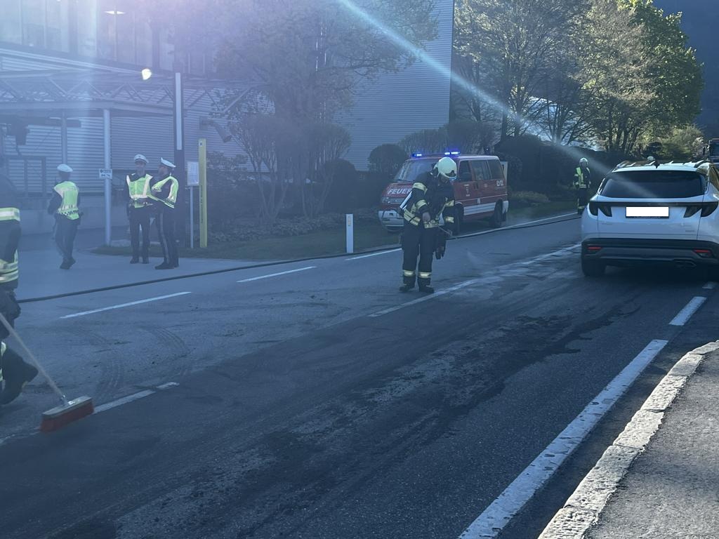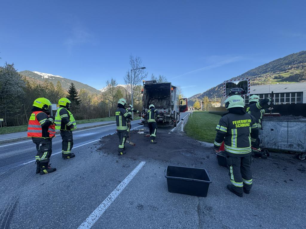Beim Eintreffen der Feuerwehr wurde festgestellt, dass der LKW durch einen Schlauchplatzer Hydrauliköl verloren hat. Das Öl wurde gebunden und die Straße gereinigt.