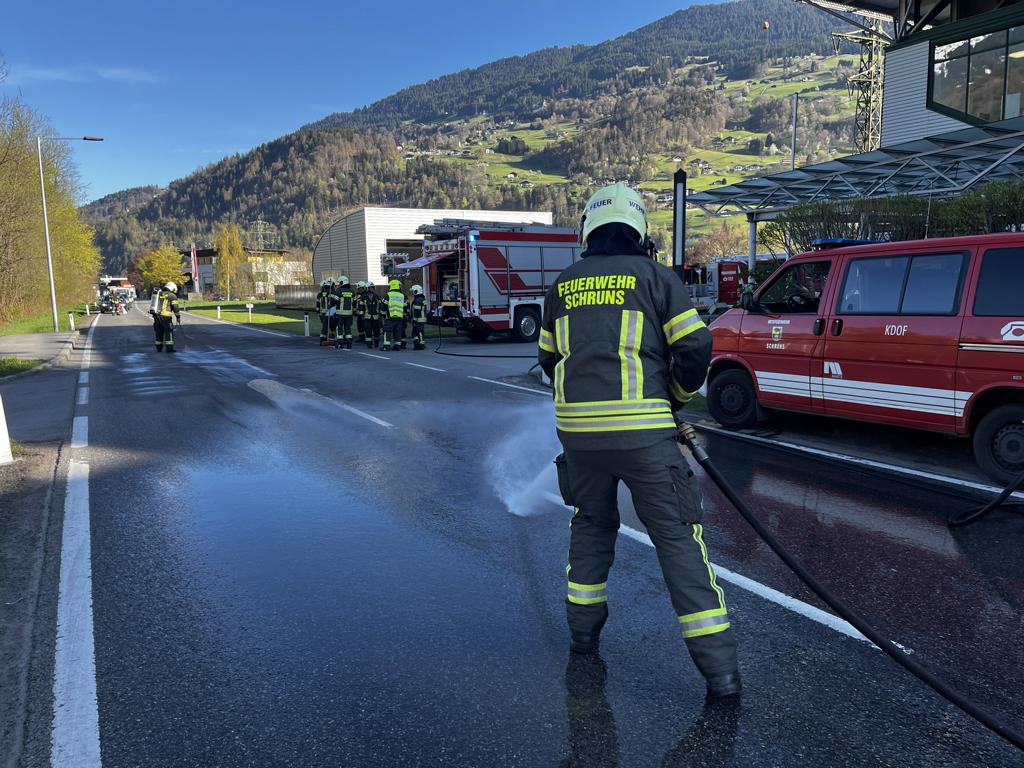 Ortsfeuerwehr Schruns mit 17 Personen mit KDO-F, VF mit Ölhänger und GRLF.